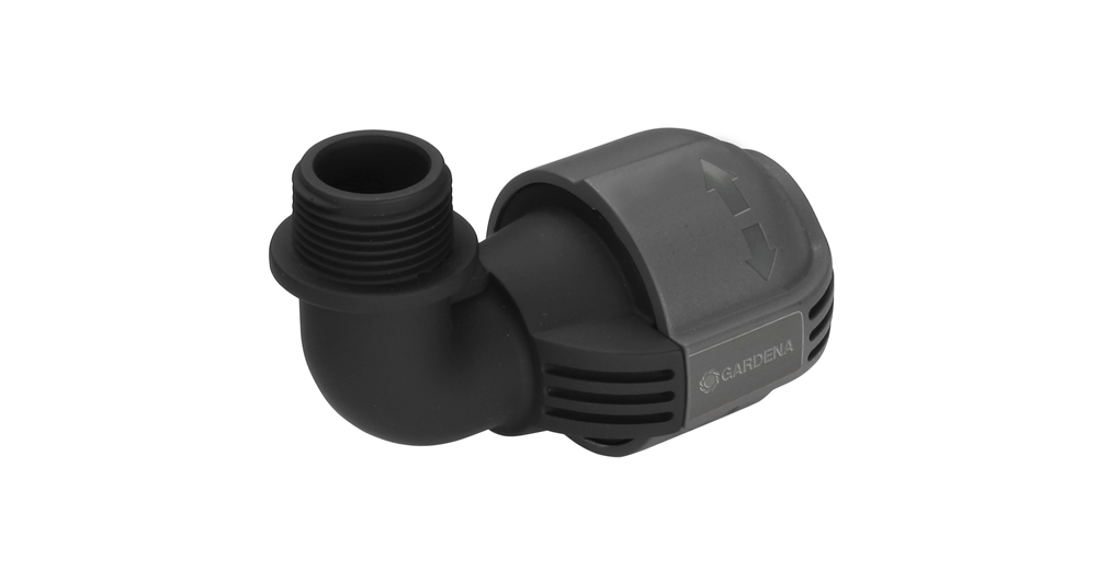 GARDENA 25 mm × 3/4″ väliskeermega nurgaliitmik (kuulub GARDENA vihmutisüsteemi) aitab toru otsa külge paigaldada turbomootoriga pop-up-vihmuti T 380 ja võnkuva pop-up-vihmuti OS 140, samuti suurte alade kastmiseks mõeldud pop-up-vihmutussüsteemi AquaContour automatic. Tänu patenteeritud “Quick & Easy” lihtsale ühendustehnoloogiale on torude ühendamine ja eraldamine võimalik ilma tööriistadeta: kruviühendust tuleb lihtsalt 140 kraadi keerata. Et tagada veekindel ja ohutu töö, on nurgaliitmiku keermestik isetihenduv.